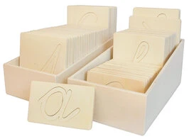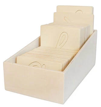 Die Fühlbuchstaben werden aus hochwertigem Pappelsperrholz gefertigt, von Hand geschnitten und geschliffen. Zur Aufbewahrung werden sie in zwei praktischen Holzboxen geliefert.