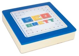 Das Geobrett besteht aus hochwertigem Pappelsperrholz. Die Messingnägel besitzen einen runden Kopf, der ein Abrutschen der Gummiringe verhindert. Die laminierten Kärtchen können zusammen mit dem restlichen Zubehör platzsparend in der Box aufbewahrt werden.