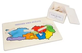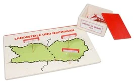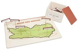 Die Steckkarten werden in liebevoller Handarbeit aus hochwertigem Pappelsperrholz gefertigt und sorgfältig bemalt – ein langlebiges Montessori Lernmaterial, das Wissen über Österreich lebendig vermittelt.