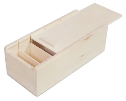 Die Boxen bestehen aus unbehandeltem Pappelsperrholz, Pappelholz – so haben Kinder die Möglichkeit ihren Karteikasten individuell zu gestalten.