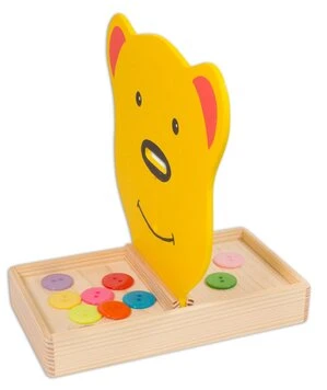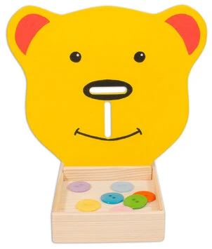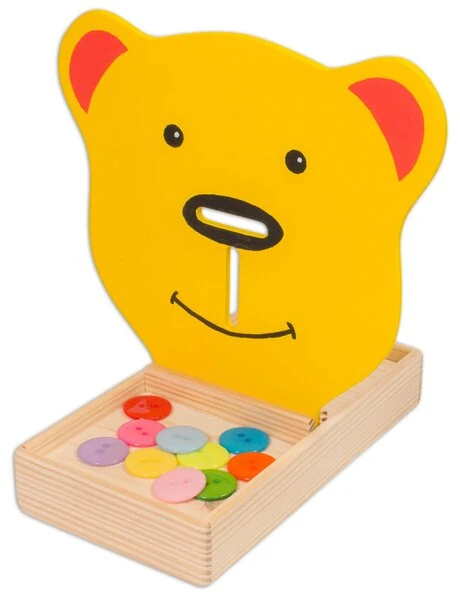 Dieses süße kleine Bärchen fördert die Bewegungskoordination. Handliche Knöpfe werden senkrecht oder waagerecht durch die Nase des Bären gesteckt. Spielerisch werden dabei die Schreibfinger trainiert und die Auge-Hand-Koordination geschult.