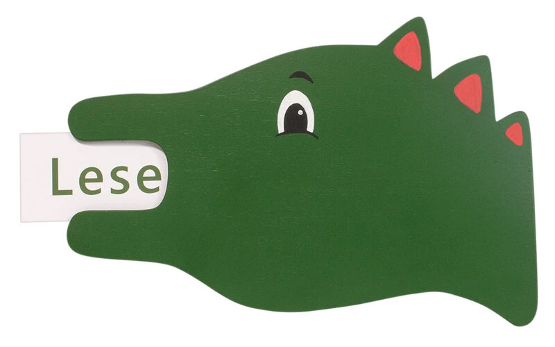 Dieser Lesedrache aus Holz motiviert Kinder auf spielerische Weise zum Lesen üben und hilft dabei, Wörter selbstständig zu entziffern. Dazu werden einfach kleine Wortkarten in das Fach auf der Rückseite des Drachen gelegt. Die Kärtchen können anschließend Buchstabe für Buchstabe aus dem Maul des Drachen gezogen und dabei laut vorgelesen und entziffert werden.