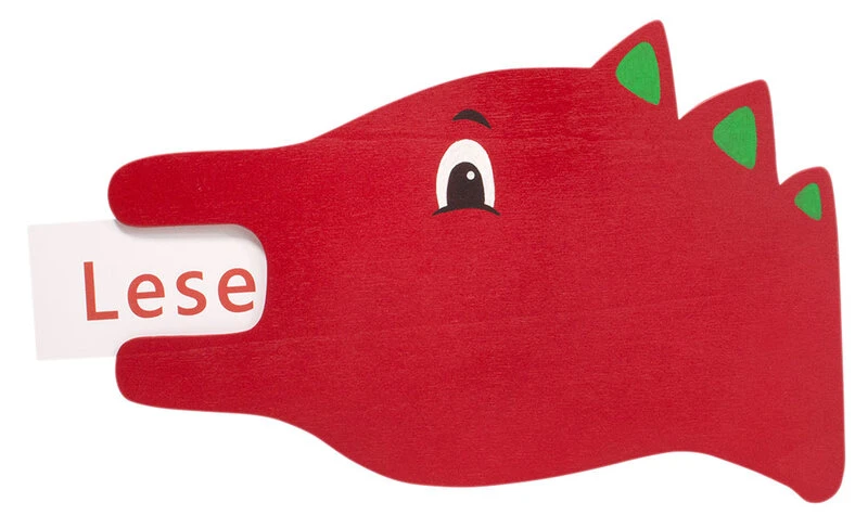 Dieser Lesedrache aus Holz motiviert Kinder auf spielerische Weise zum Lesen üben und hilft dabei, Wörter selbstständig zu entziffern. Dazu werden einfach kleine Wortkarten in das Fach auf der Rückseite des Drachen gelegt. Die Kärtchen können anschließend Buchstabe für Buchstabe aus dem Maul des Drachen gezogen und dabei laut vorgelesen und entziffert werden.