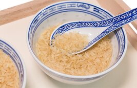 Bei dieser Löffelübung wird mit einem Löffel vorsichtig Reis von einer Schüssel in die andere transferiert. Dabei werden die Schreibfinger trainiert und gleichzeitig auch die Auge-Hand-Koordination geschult.