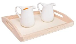 Unbehandeltes Holz nur trocken reinigen. Die Milchkannen sind spülmaschinengeeignet.