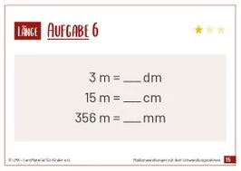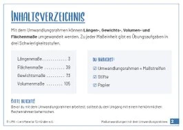 Zu jeder Maßeinheit gibt es eine Informationsseite mit einer übersichtlichen Tabelle sowie Übungsaufgaben in drei Schwierigkeitsstufen. Die Lösungen befinden sich auf der Rückseite der Aufgabenkarten – so ist eine Selbstkontrolle jederzeit möglich. Die laminierte Lernkartei im handlichen DIN-A6-Format umfasst 72 Seiten.