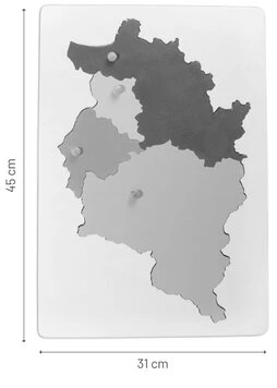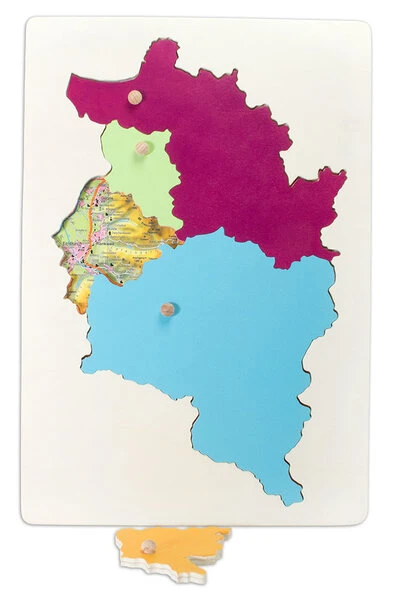 Mit diesem Vorarlberg Holzpuzzle lernen Kinder die Bezirke und Hauptstädte auf spielerische Weise kennen. Jedes Puzzleteil entspricht einem politischen Bezirk und ist in leuchtenden Farben bemalt. Unter den Puzzleteilen befindet sich eine detaillierte Landkarte, die gleichzeitig das Kartenlesen und geografische Verständnis fördert.